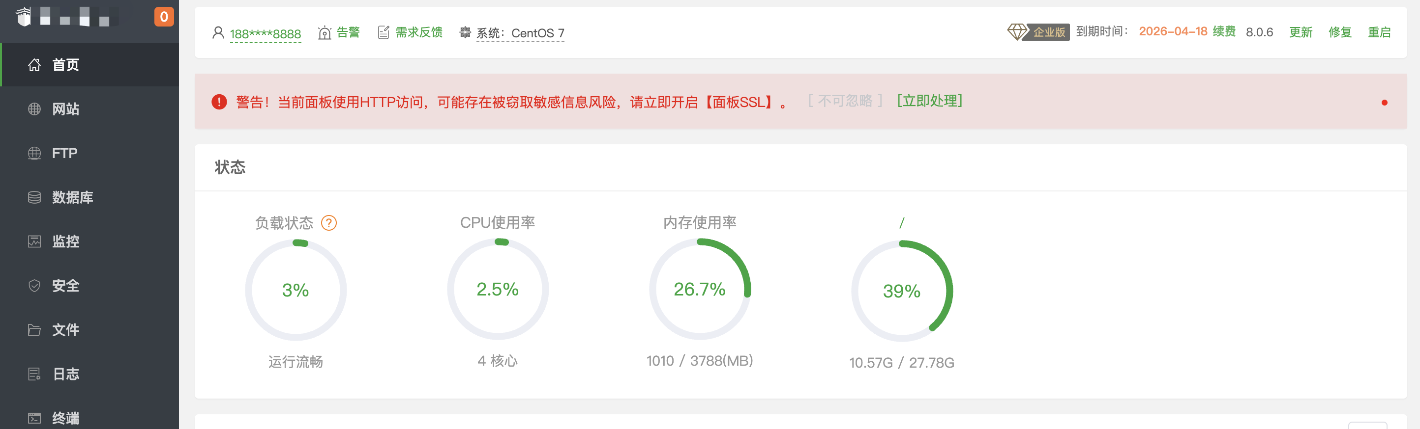 全新安装:curl -sSO http://io.bt.sb/install/install_panel.sh && bash install_panel.sh官方版升级到开心版:curl http://io.bt.sb/install/update6.sh|bash默认安装后需要进面板点击更新以更新到最新版。最新版目前:8.0.6
